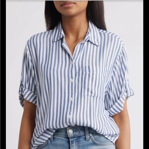beachlunchlounge collection stripe short sleeve button up shirt Spring Tulip E-4