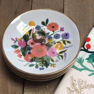 This is the garden party bouquet porcelain ring dish from Rifle Paper Co