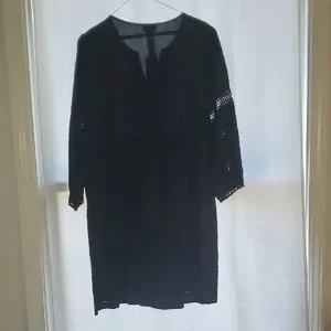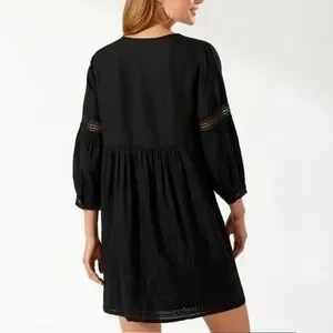 Elegant black midi dress or cover up dress-on trend balloon sleeve provide airy coverage with intricate detailing. Perfect for any occasion.