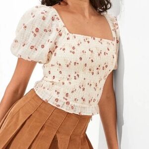 American Eagle Floral Puff Sleeve Smocked Top