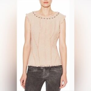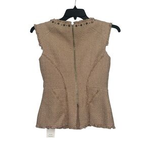 Rebecca Taylor Tweed Peplum Top Size 2 Studded Sleeveless Blush Pink