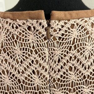 Anne Klein Crochet Lined Sheath Dress Sleeveless Taupe Crew Neck Sz 10 EUC. No snags, stains, pills, etc. Looks New.