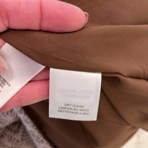 Full Back Zipper. Neck trim feels like faux suede. Fits true to size 10 - See measurements in pics that show approx