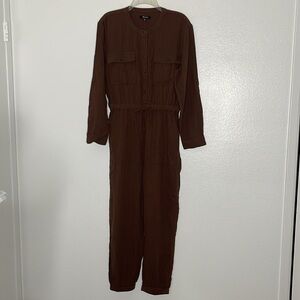 Madewell Lightspun Tapered-leg Double Gauze Jumpsuit In Cocoa Brown Size 10 New