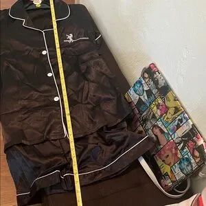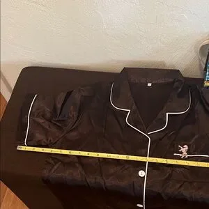 Experience ultimate comfort with this elegant black satin pajama set. Perfect for a cozy night's sleep.
