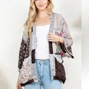 Young Threads Patchwork Boho Kimono Cardigan - Slate Floral & Paisley