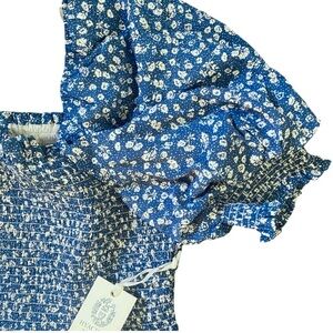 Hyacinth House Pai Mini Dress XL NWT Blue Ditsy Floral Cotton Smocked Puff Sleev