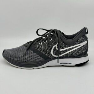 Great pair of Nike Zoom Strike women's size 8 running sneakers in dark gray with black accents. These shoes are super lightweight and the mesh uppers keep your feet cool and dry. There is a quote from Bill Bowerman on the inside of each shoe. These sneakers were rarely used and are in good condition.
