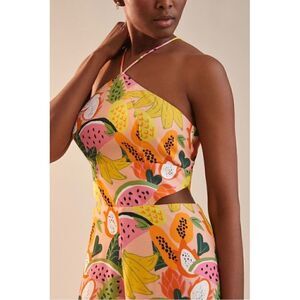 NEW Anthropologie Hutch Mixed Fruit Yellow Halter Tropical Cut Out Romper Size 8