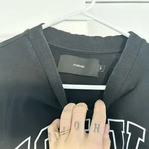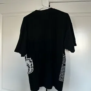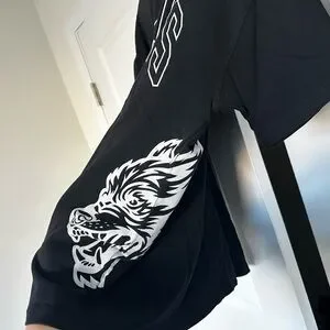 Bold Wolves design on a black tee. Features striking graphics and short sleeves. Lightly worn.
