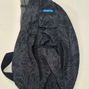 Kavu sling bag with unique black and gray pattern. Ideal for daily adventures. Comfortable and stylish design. Never used. Multiple pockets. Adjustable strap. Light weight.