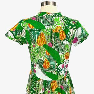 La Plage Alison Short Sleeve Dress Size XS Green Banana Jungle 100% Cotton