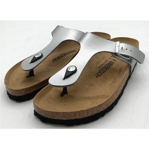 Birkenstock Silver Sandals with Tan Footbed