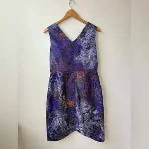 Gorgeous work of art by Samuel Dong. V-neck with a tulip style skirt. Lined. Back zip.