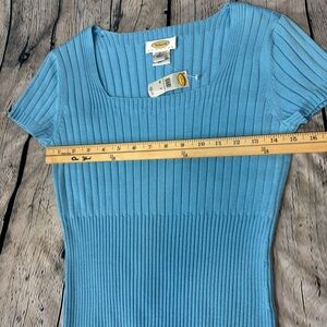 Talbots Vintage NWT Baby Blue Ribbed Silk Nylon Blend Top Retro Square Neck Sz P