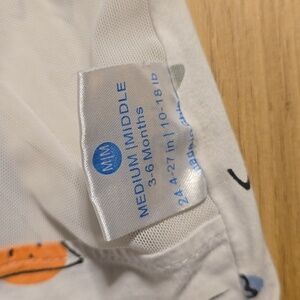 Charming baby swaddle with vibrant patterns. Easy zipper closure. Comfortable fit for infants.