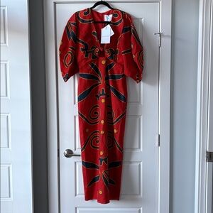 Step out in style with this vibrant red dress featuring bold patterns. Perfect for any occasion, this dress combines elegance with a touch of flair.