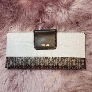 FOSSIL Madison Slim Clutch. Brown Leather NWT