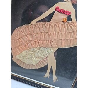 Art Deco Vintage Dimensional Ribbon Art Doll Picture in Layered Gown & Lace Hair