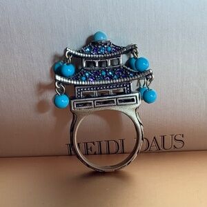 Heidi Daus Chinoiserie Temple Crystal Beaded Ring Turquoise Amethyst SZ 8