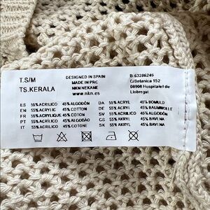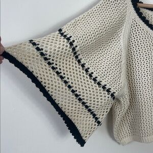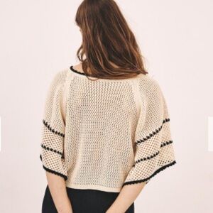 NKN Nekane Ecru Black Open Weave V-Neck Oversized Cropped S/S Sweater Small/Med