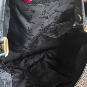 Vintage Gucci GG leather hobo Guccissima bag. Good used condition. I’m pricing this lower as the bag has a slight stiffness to it. It’s still a great bag. I’m thinning out my collection. Look at my other designer bags. I purchased this from a local high end consignment store several years ago- they authenticate the bags before they sell them. Thanks!
