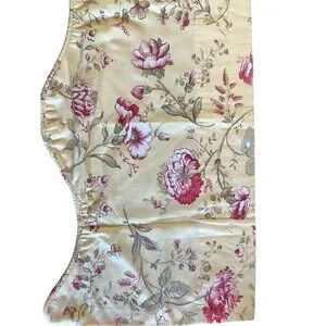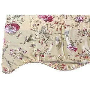 Vintage Floral Valance Curtain Yellow With Pink & Green Botanical Design Scallop