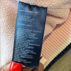 Tommy Hilfiger Pink and Black Puffer Jacket with Faux Fur Hood