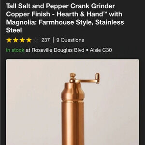 NWT Tall Salt and Pepper Crank Grinder Copper Finish - Hearth & Hand