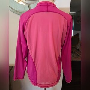 Title Nine Women's Small Open Front Pink Cardigan Nylon Stretch Mesh Back Active. Please see measurements in photos provided. In good Pre-owned condition. Cross posted. I ship out same or next day. Thanks for looking!