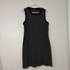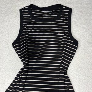Tommy Hilfiger Women Black Stripes Ribbed Sleeveless Mini Dress