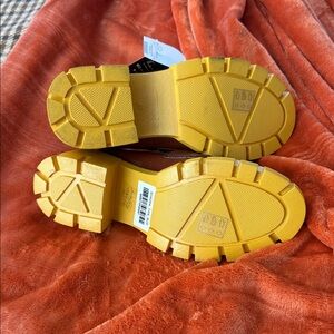 Elevate your look with these stylish brown loafers featuring bold yellow soles. Perfect for any occasion.