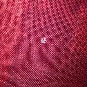 Item has a small hole on one of the back cherries. See photo. Doesn’t show as a hole. Looks like shading on the cherry print.