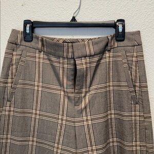 Stylish plaid wide-leg trousers. Features a classic check pattern.