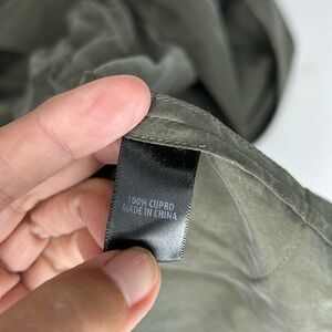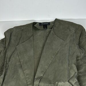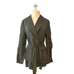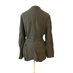 St John Sandwashed Wrap Jacket, Size M, Color - Deep Olive, 100% Cupro - Silky Feel, Belt, Waist Pockets, Measurements in pics