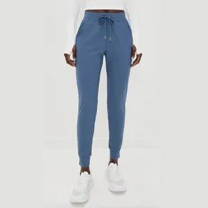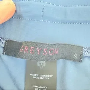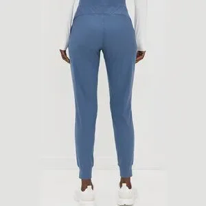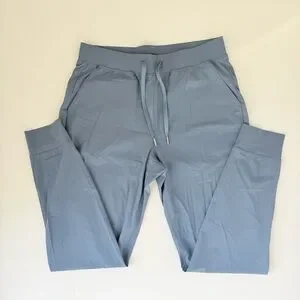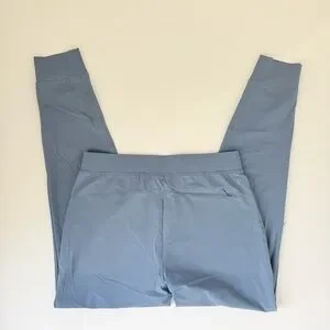 Greyson Phoenix Joggers in Vintage Indigo, size Small. Lightweight, super-stretch nylon blend with elastic cuffs, drawstring waist, slant pockets, and zip back pocket. Rise 10.75", inseam 26.75". Soft, flexible, and perfect for athleisure or everyday wear. Excellent condition. Smoke-free home. Same or next day shipping.