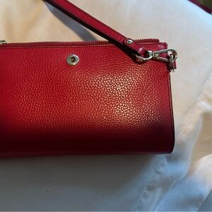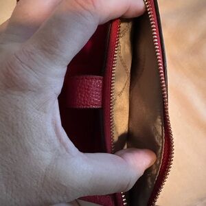 Like New Michael Kors Pebble Leather Jet Set Double Zip Red/Chili cell phone wristlet.