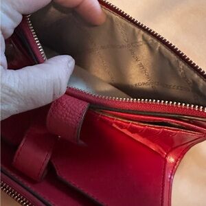 Like New Michael Kors Jet Set Double Zip pebble Leather Wristlet in Red Chili