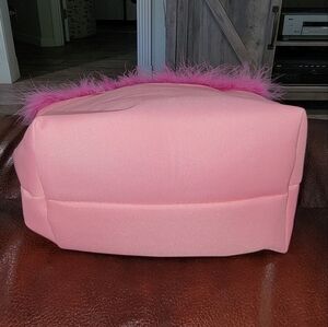 Pink and green faux fur trim bag with a zipper closure, made from 100% polyester #y2k #fairy #cottagecore #coquette
