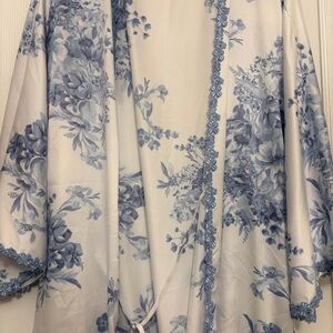 Chic cream robe with delicate blue floral patterns. Soft and luxurious feel. New- never worn.
