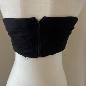 Womens Akira Tube Top Crop Black Strapless Size large Zip Up NEW