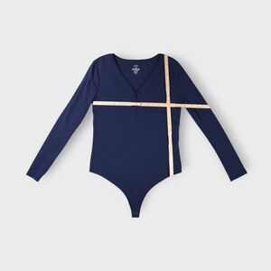 Nuuds Cotton Stretch Long Sleeve Crewneck Bodysuit Sz Large EUC Navy Blue