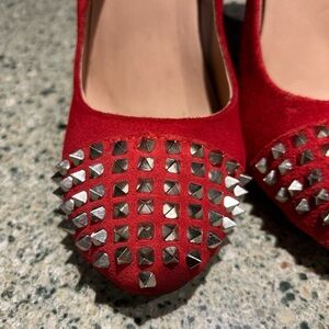 Betsy Johnson Red Suede Studded Pointed Toe Heels Leopard Sole Size 8