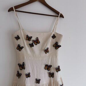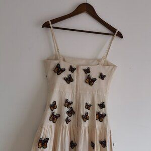 Agua By Agua Bendita Lima Embroidered Butterfly Linen Maxi Dress Size Small