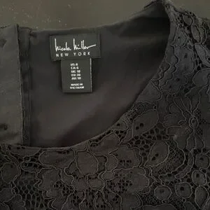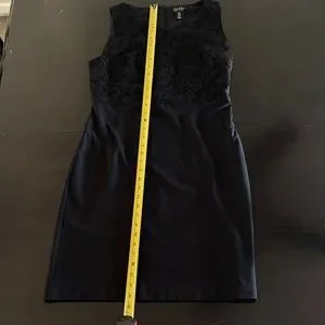 Chic black midi dress with lace bodice. Sleeveless and elegant. Ideal for special occasions.