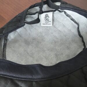This Vintage Harley Davidson Quilted Welders Cap is a stylish accessory for men who appreciate the brand's iconic image. Made in the USA in the 90s, this black cap features a solid quilted pattern and is lightweight with stretch for comfort. Perfect for casual wear, this cap is a must-have for fans of Harley-Davidson and biker culture, adding a touch of Americana flair to any outfit.