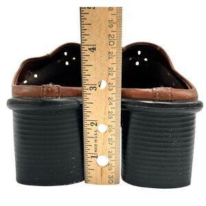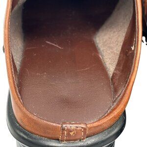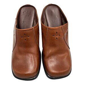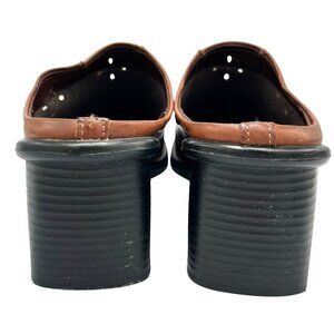 Predictions Square Toe Laser Cut Leather Chunky Heel Mules Clogs