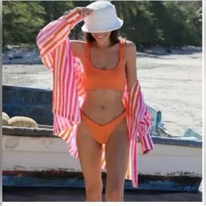 Beach Riot Pink Orange Striped Beach Resortwear Button Down Cover Up Shirt Sz PL