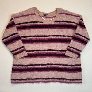 Torrid Womens Sweater SZ Plus 4 Pink Purple Striped Fuzzy Knit Crew 3/4 Sleeve