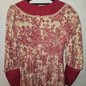 Gunne Sax Black Label Red Toile de Jouy Vintage Maxi Maiden Dress Sz 9/10